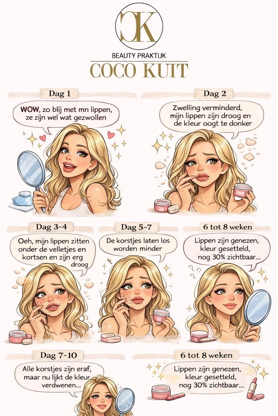 • Direct na de behandeling zijn de lippen intenser van kleur